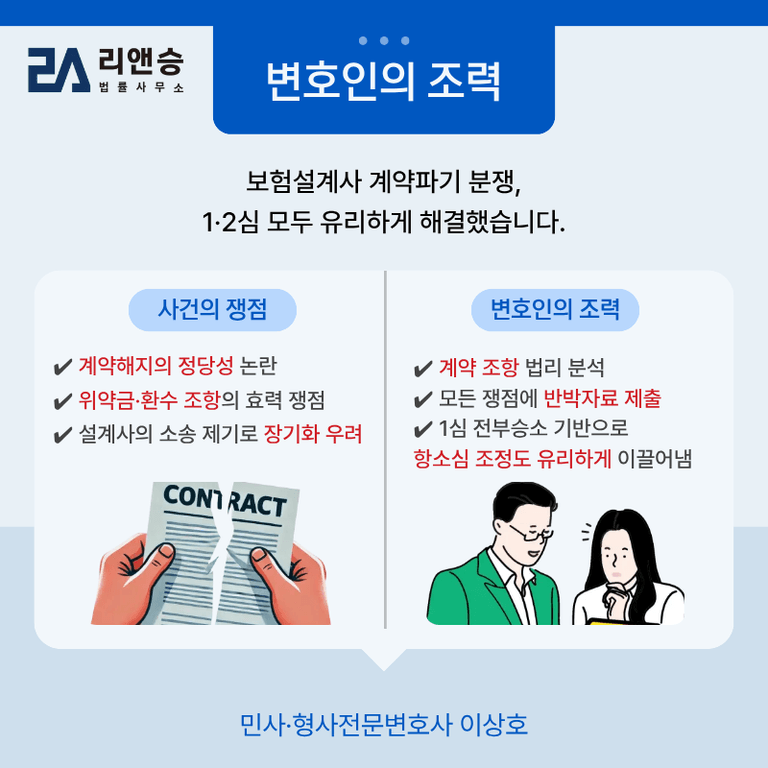 보험설계사 계약파기 분쟁, 1·2심 모두 승리한 사례