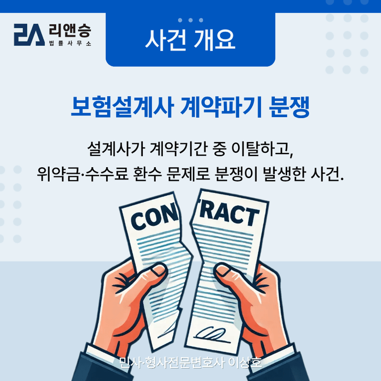 보험설계사–보험대리점 분쟁은 계약 전체 구조와 업계 특성을 이해한 전문 대응이 필수입니다.