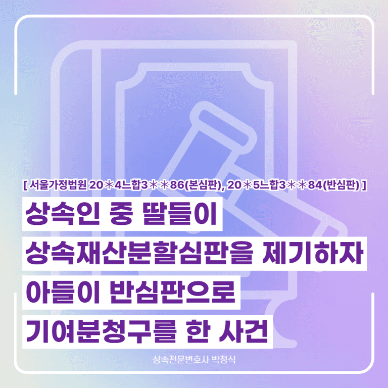 반면 상대방들은 망인을 부양하였고, 망인의 병원 진료비를 부담하였으며, 주택의 인테리어 공사비를 지출하는 등 망인의 재산 유지 및 증가에 특별히 기여하였다고 주장하면서 기여분 반심판을 청구하였습니다.