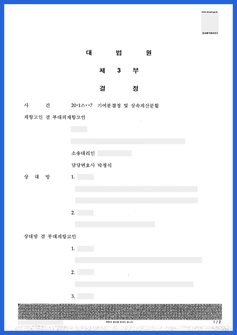 안녕하세요, 상속전문변호사 박정식입니다.