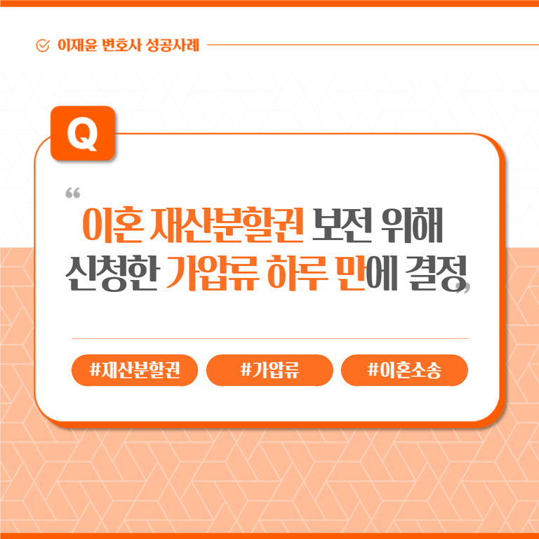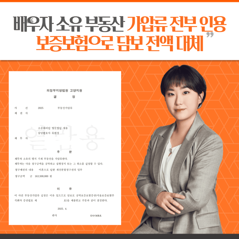 의뢰인은 이혼소송을 진행하면서 배우자에 대한 재산분할청구권을 보전하기 위하여 새움에 가압류 신청을 의뢰하셨습니다.