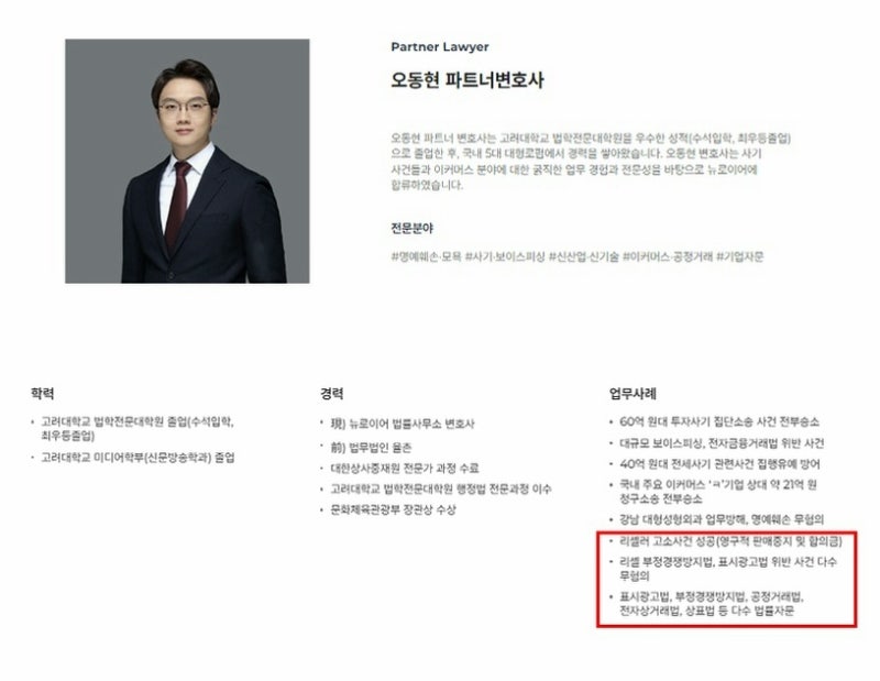 리셀러 사건을 성공적으로 이끈 뉴로이어 법률사무소 오동현 변호사