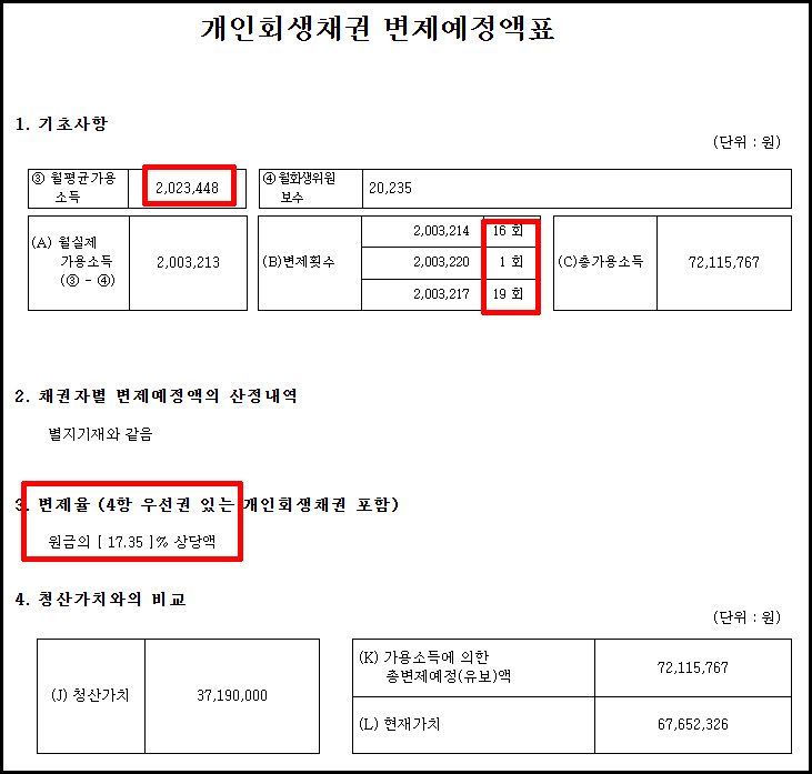 월 2,003,213원 × 36개월만 납부하도록 하는 개시결정을 내렸습니다.