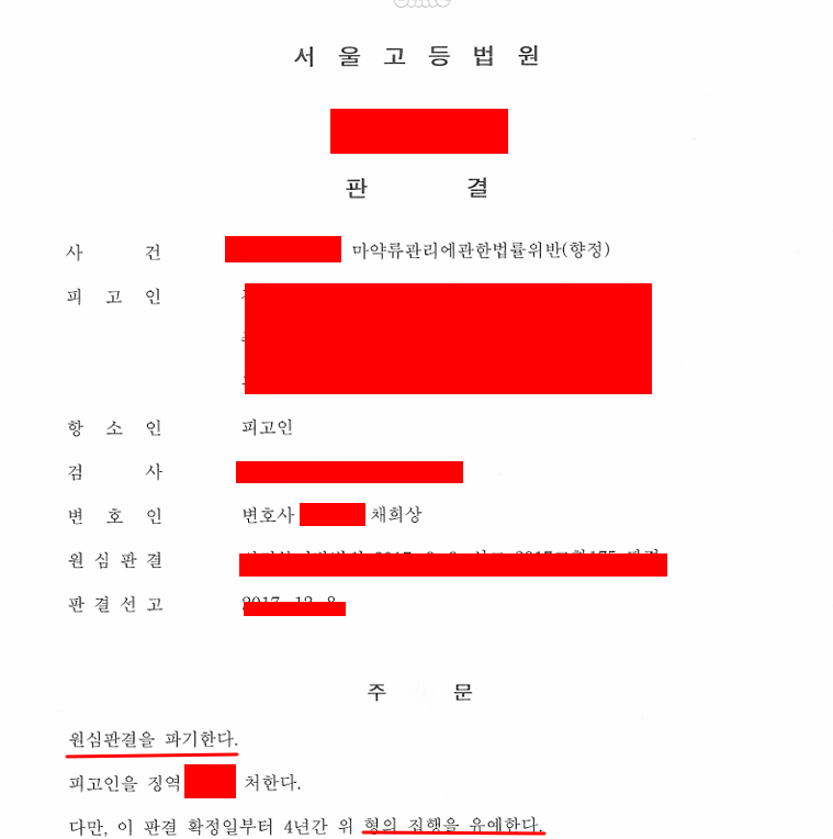 항소심 재판부는 저희의 변론을 대부분 받아들였습니다. 재판부는 판결문에서 “피고인이 이 사건 각 범행을 모두 자백하고 잘못을 뉘우치고 있으며, 아무런 전과 없는 초범인 점, 판매 내지 유통을 목적으로 필로폰을 수입한 것으로는 보이지 아니하는 점, 가족들과 깊은 유대관계를 맺고 있는 것으로 보이고, 이후로는 더 이상 마약류의 투약행위를 하지 않을 것을 다짐하고 있는 점” 등을 유리한 정상으로 참작하여 원심판결을 파기하고 집행유예를 선고하였습니다.