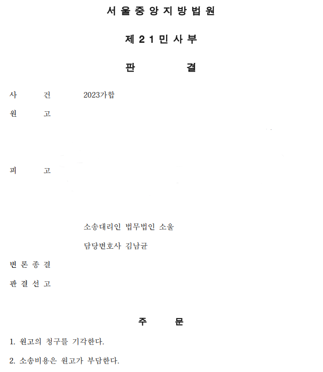 법원은 본 법인의 주장을 그대로 받아들여, 원고의 손해배상 청구를 전부 기각하고, 소송비용 역시 원고가 부담한다는 판결을 선고하였습니다.