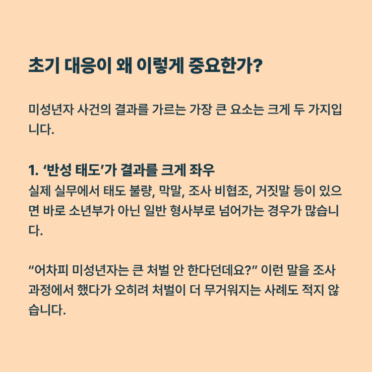 미성년자 사건의 결과를 가르는 가장 큰 요소는 크게 두 가지입니다.