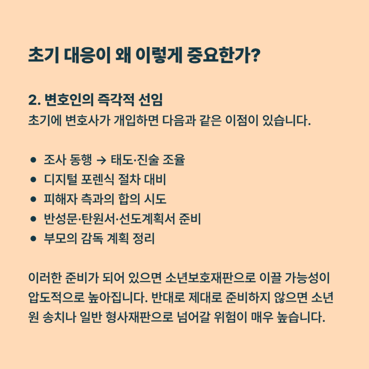 반대로 제대로 준비하지 않으면 소년원 송치나 일반 형사재판으로 넘어갈 위험이 매우 높습니다.