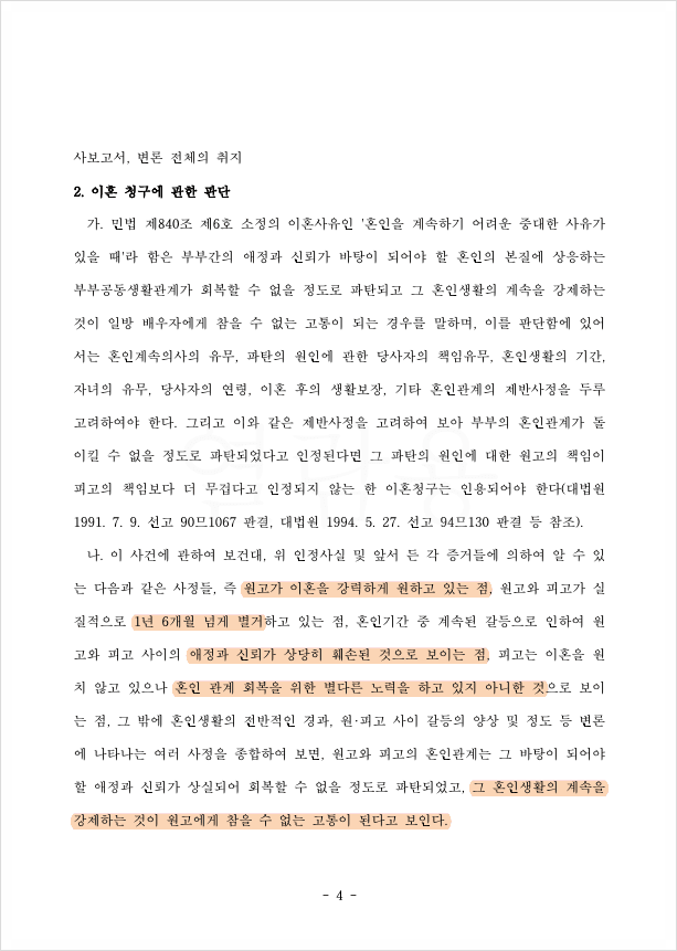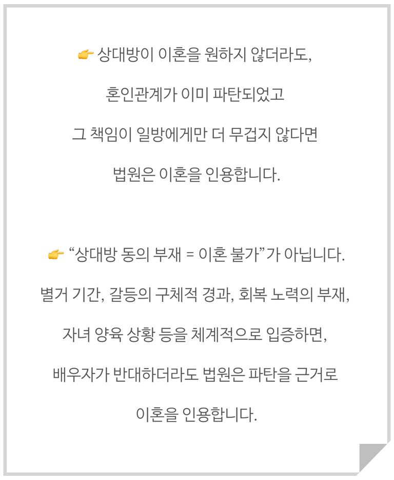 상대방이 반대하더라도 법원은 이혼을 인정합니다.