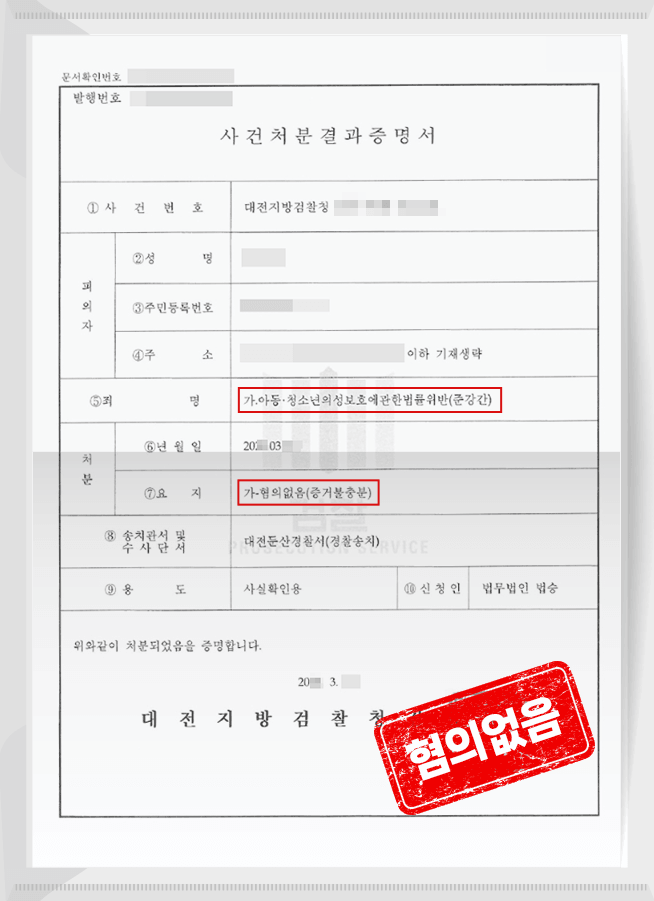 결과: 증거 불충분으로 아청법 무혐의 처분