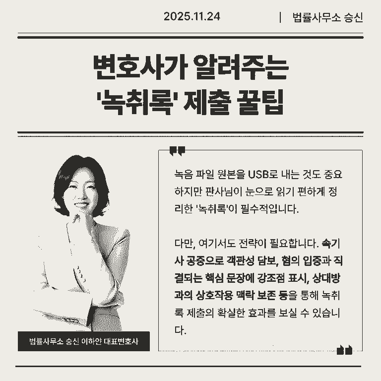 그리고 재판에서 진짜 힘을 발휘하는 녹취 활용법을 정리해 드리겠습니다.