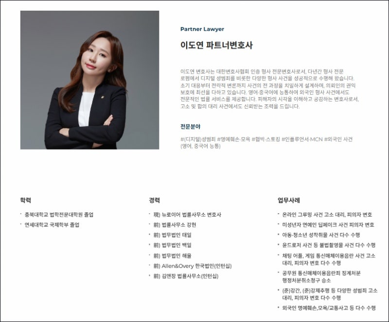 뉴로이어 법률사무소 이도연 파트너변호사입니다.