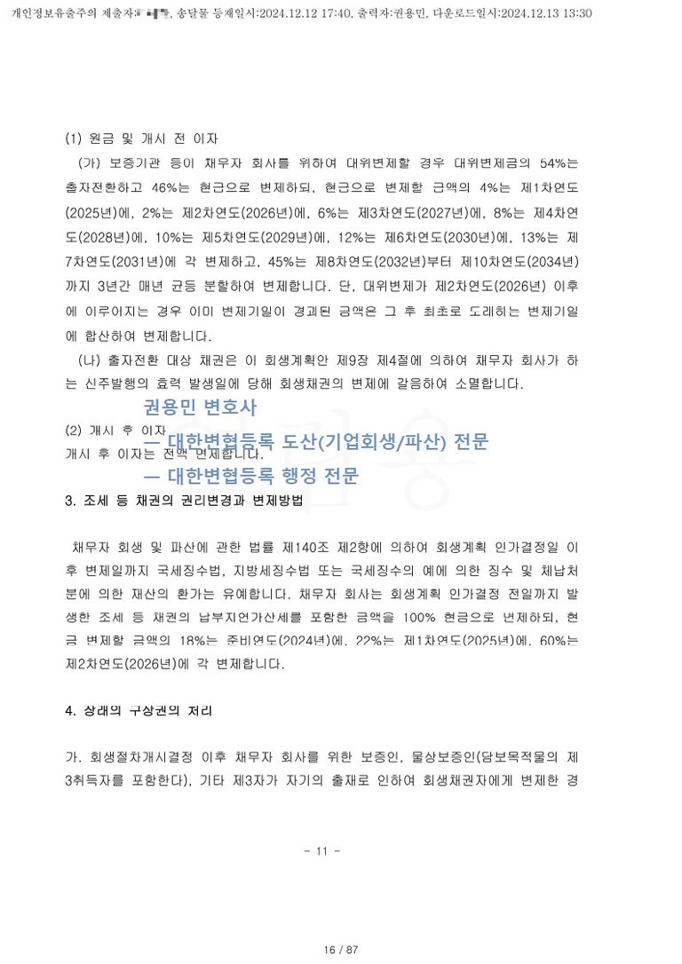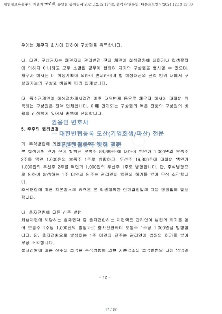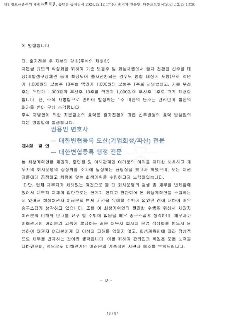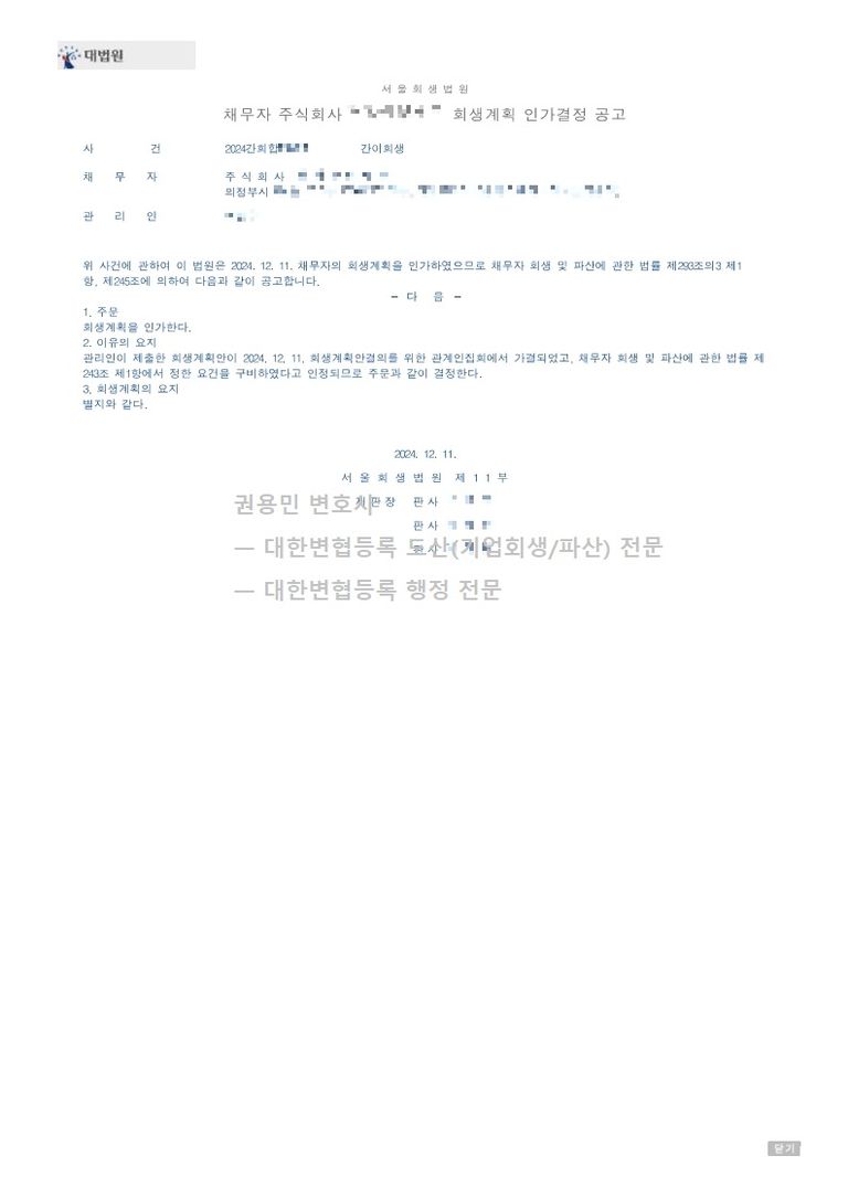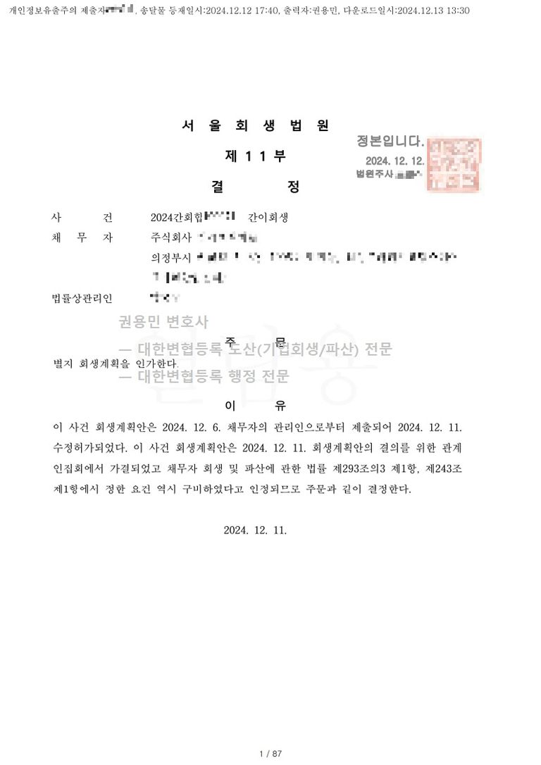 2024. 12. 11. 간이회생 인가 - 서울회생법원