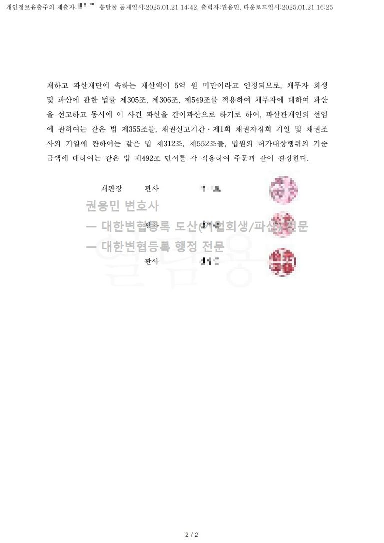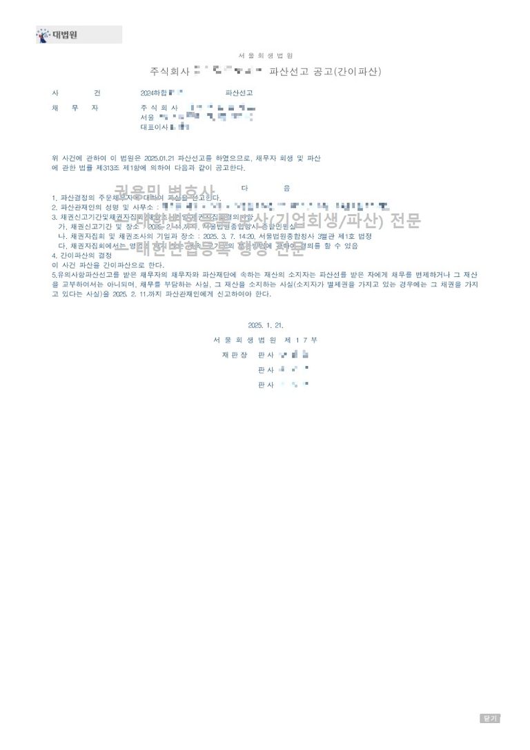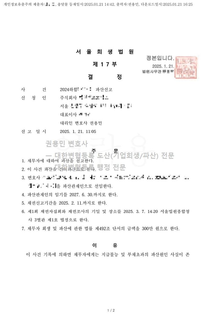 2025. 01. 21. 법인파산선고 - 서울회생법원