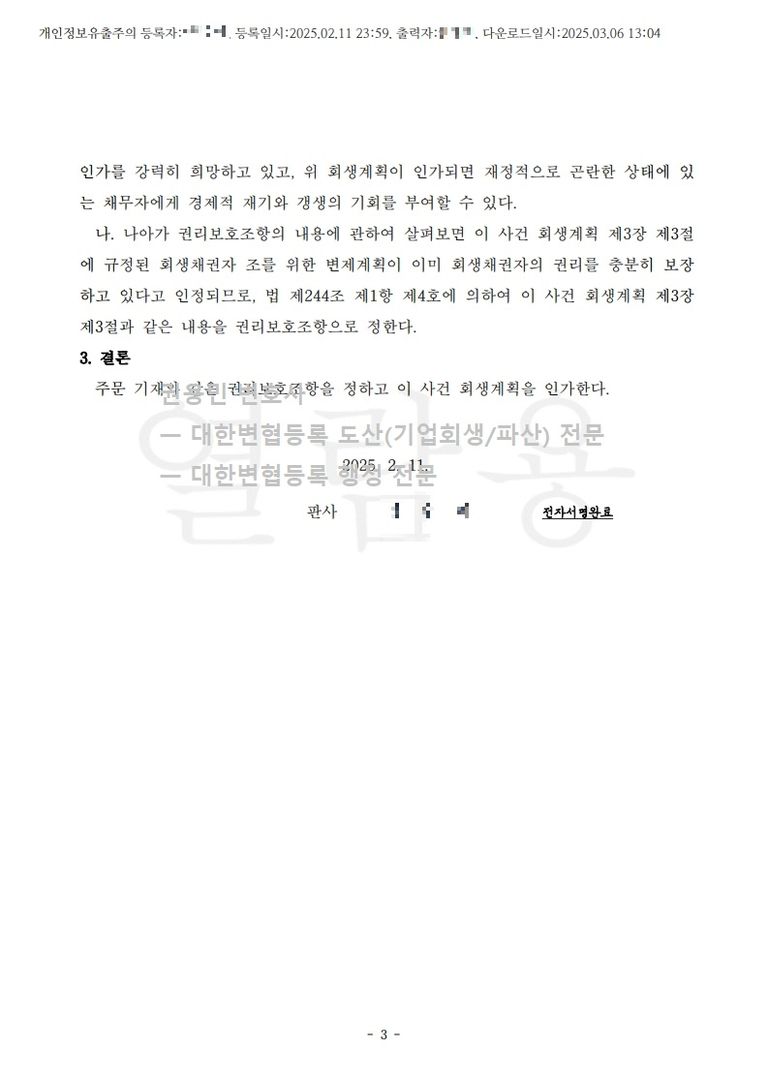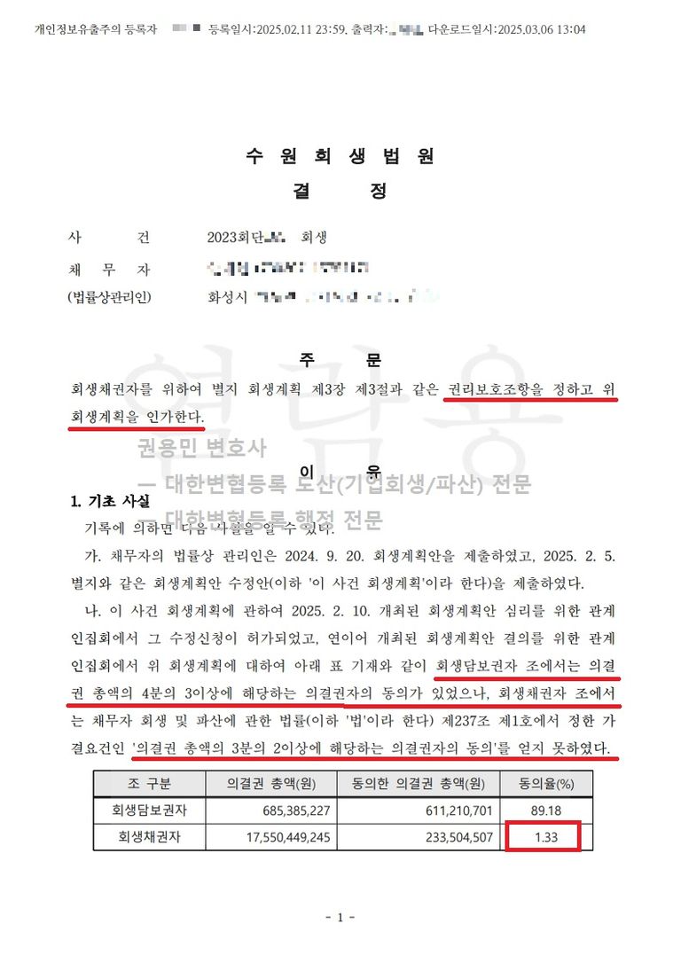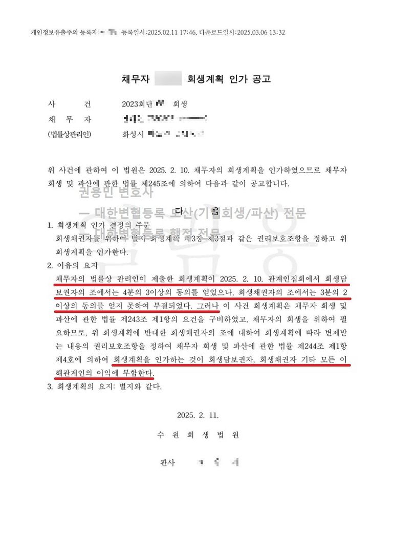 2025. 02. 11. 일반회생 강제인가 - 수원회생법원