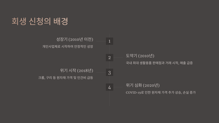 설상가상으로 2020년경부터 COVID19로 인하여 원자재 가격은 더욱 상승하였고, 채무자회사의 손실도 더욱 커지면서 결국 채무자회사는 법인회생절차를 신청하게 되었다.