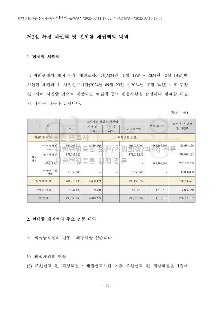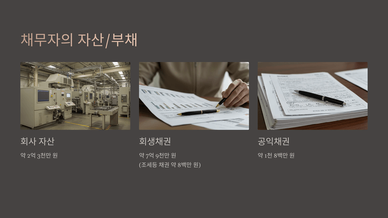 회생채권 약 7억 9천만 원 (조세 등 채권 약 8백만 원)
