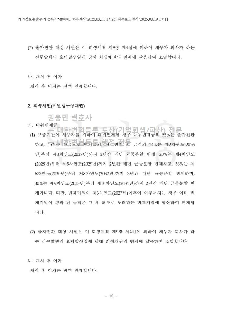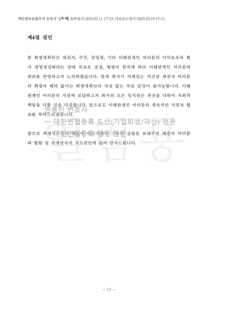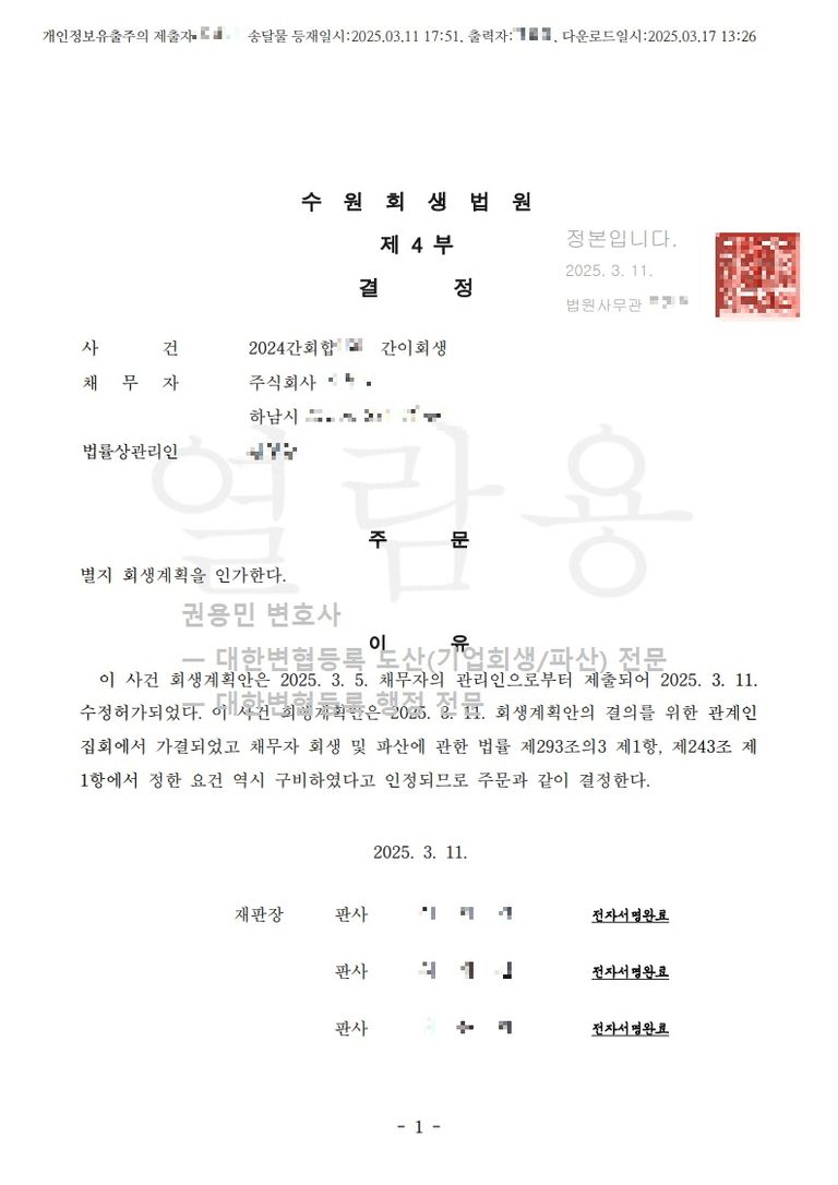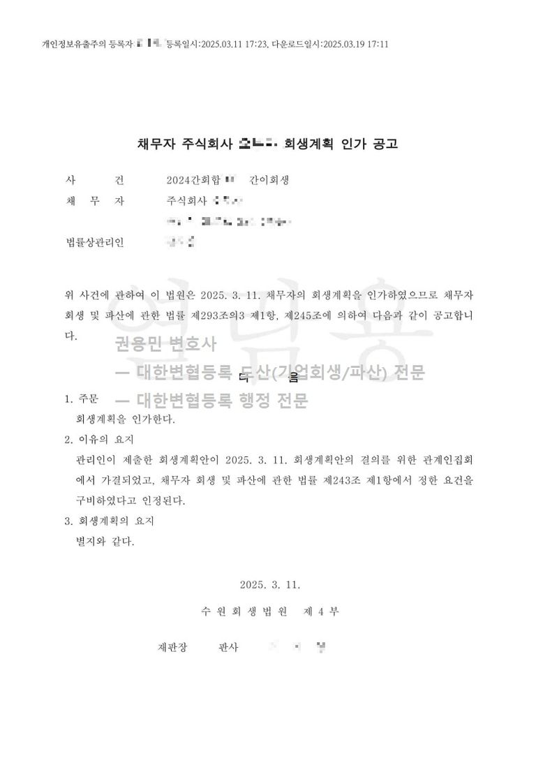 2025. 03. 11. 법인회생(간이회생) 인가 - 수원회생법원