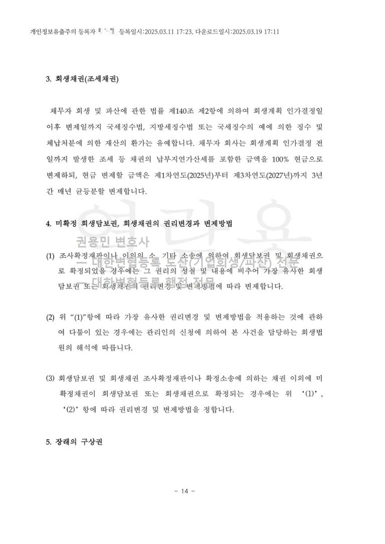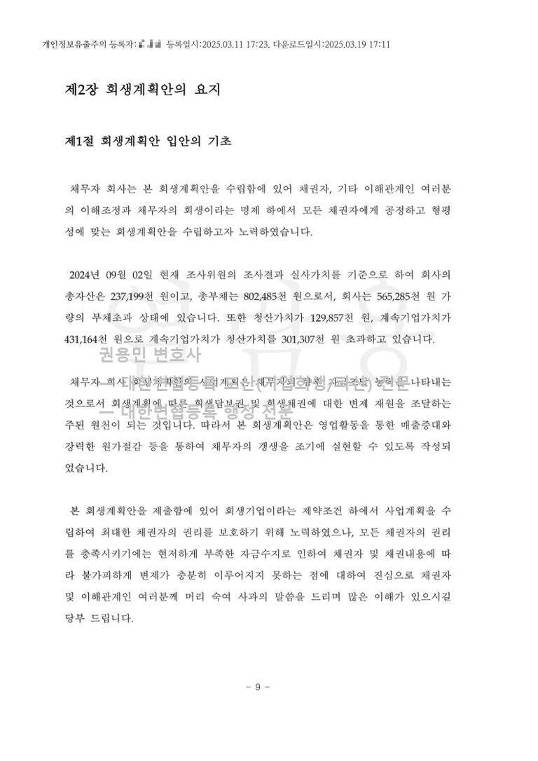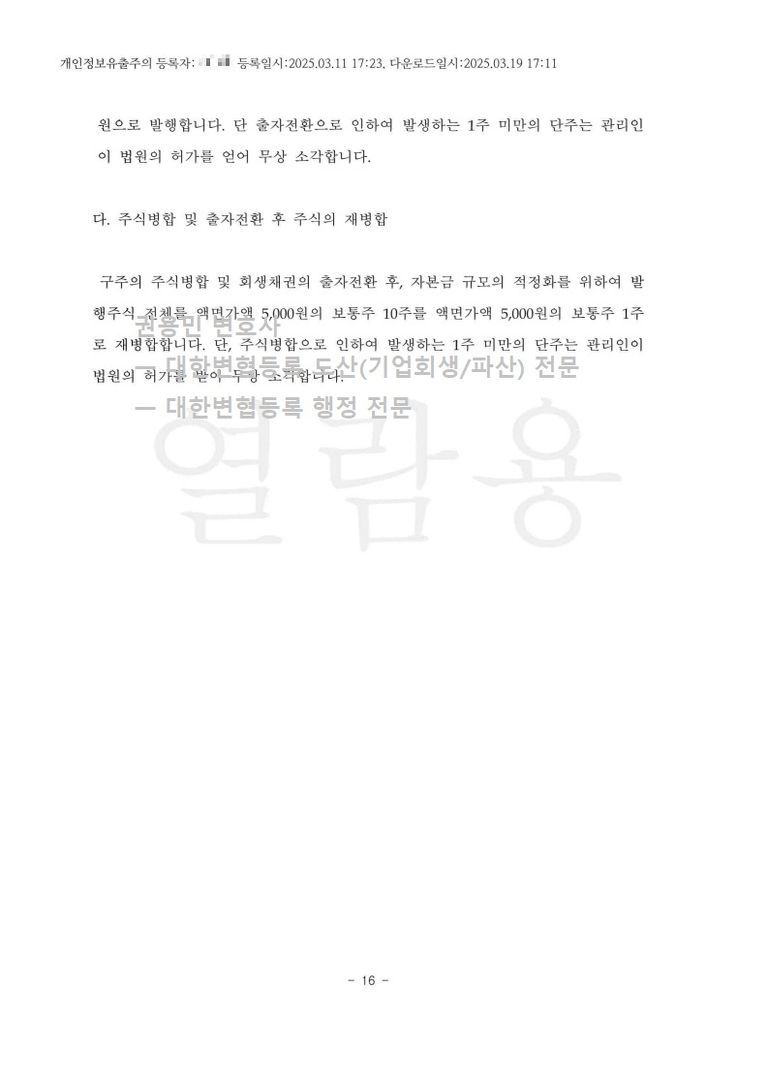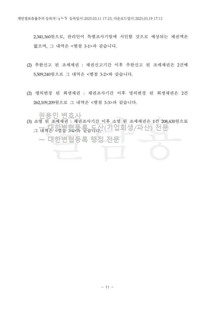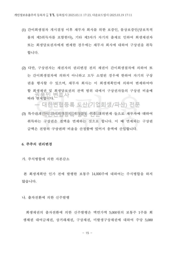 2025. 03. 11. 법인회생(간이회생) 인가 - 수원회생법원