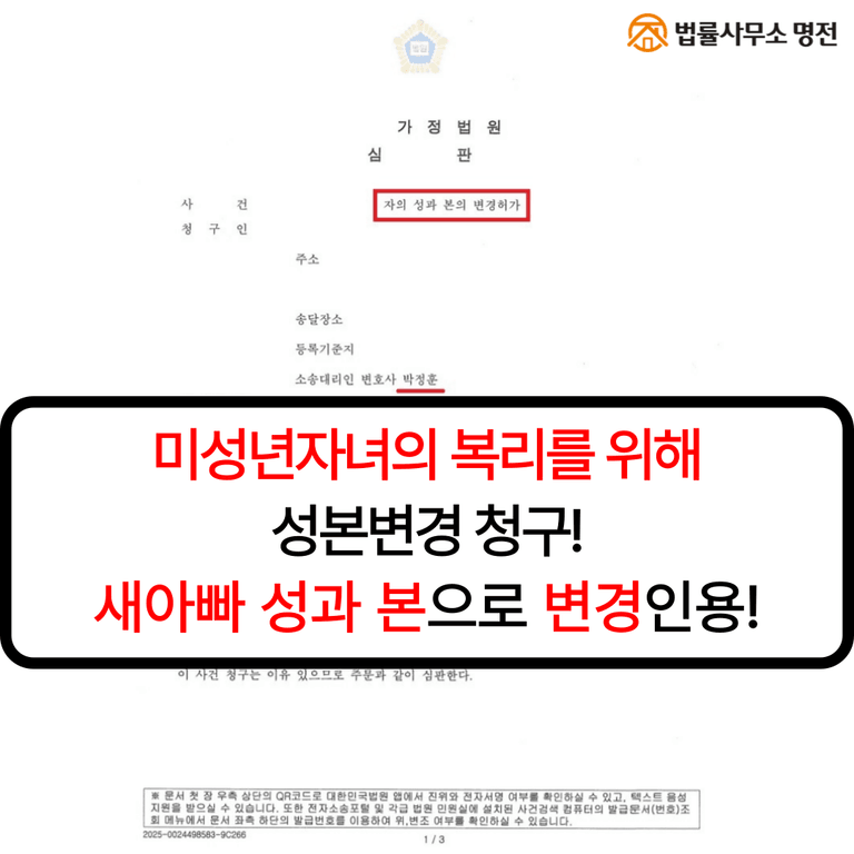 아이의 복리를 위해 성본변경을 신청하려 합니다. "