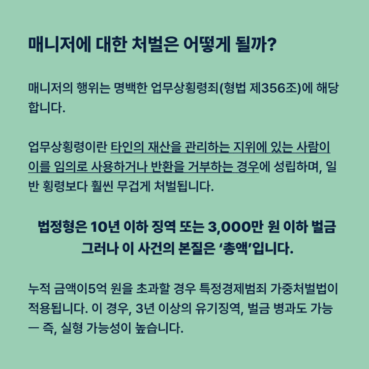 매니저에 대한 처벌은 어떻게 될까?