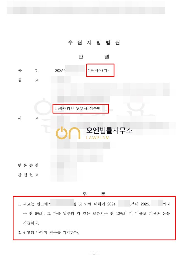 재판부는 담당변호사의 주장을 받아들여, 원고의 일부 승소판결을 하였습니다.