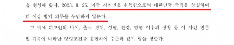 재판을 연기해 놓고 당시 피고인이 국외여행허가기간 내에 귀국하지 못한 사정, 그동안 미국에서 어떻게 생활을 하였는지와 현재 미국에서 결혼 후 자신의 치과의원을 개원하여 운영하고 있는 상황에 대한 소명, 미국 시민권을 취득하여 더 이상 대한민국의 병역의무를 지지 아니하고 모든 기반이 미국에 있어 향후 재외동포로서 권리만을 누리는 일은 없을 것이라는 설명 등을 하며 집행유예를 내려 주실 것을 요청드렸습니다.