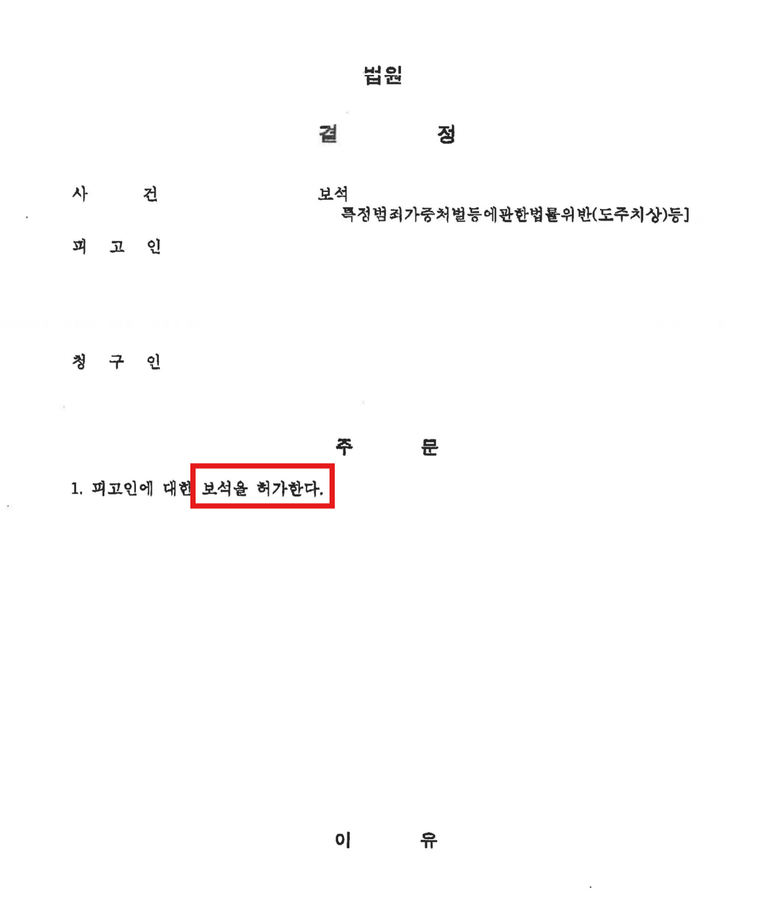 법원은 본 변호사가 제출한 변론요지서와 의견서, 풍부한 양형자료 등을 종합해, 의뢰인에 대한 보석을 허가했습니다.