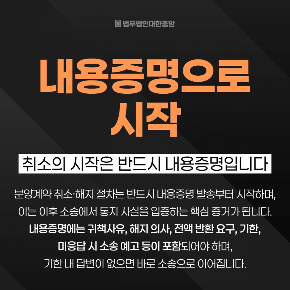 법무법인 대한중앙은 가장 합리적인 비용으로 분양계약 피해자를 조력하여 법무법인 명의의 내용증명 작성 업무를 진행하고 있습니다.