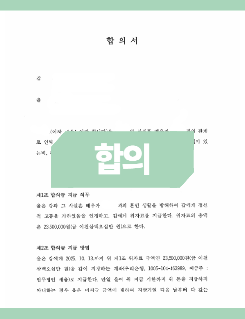 그런데 실제로 사건을 진행하다 보면 많은 분들이 “합의서에 금액만 적으면 되는 것 아닌가요?”라고 묻습니다. 하지만 상간녀 합의는 단지 돈을 얼마 받느냐의 문제가 아니라, 앞으로 재발을 막고, 추가 분쟁을 예방하며, 가정을 안정적으로 유지할 수 있는 장치를 어떻게 마련하느냐가 핵심입니다.