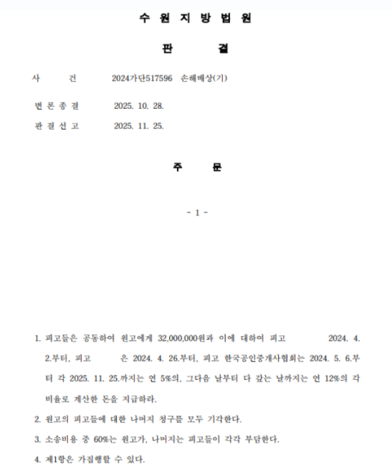 수원 전세사기 피해자 중 실질적인 배상 판결을 받아낸 매우 드문, 그리고 선례가 될 중요한 판결입니다.
