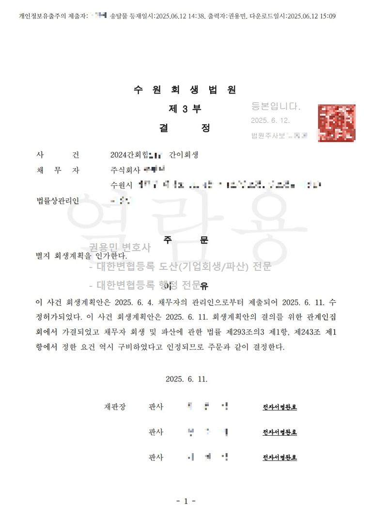 2025. 06. 12. 법인회생인가 - 수원회생법원