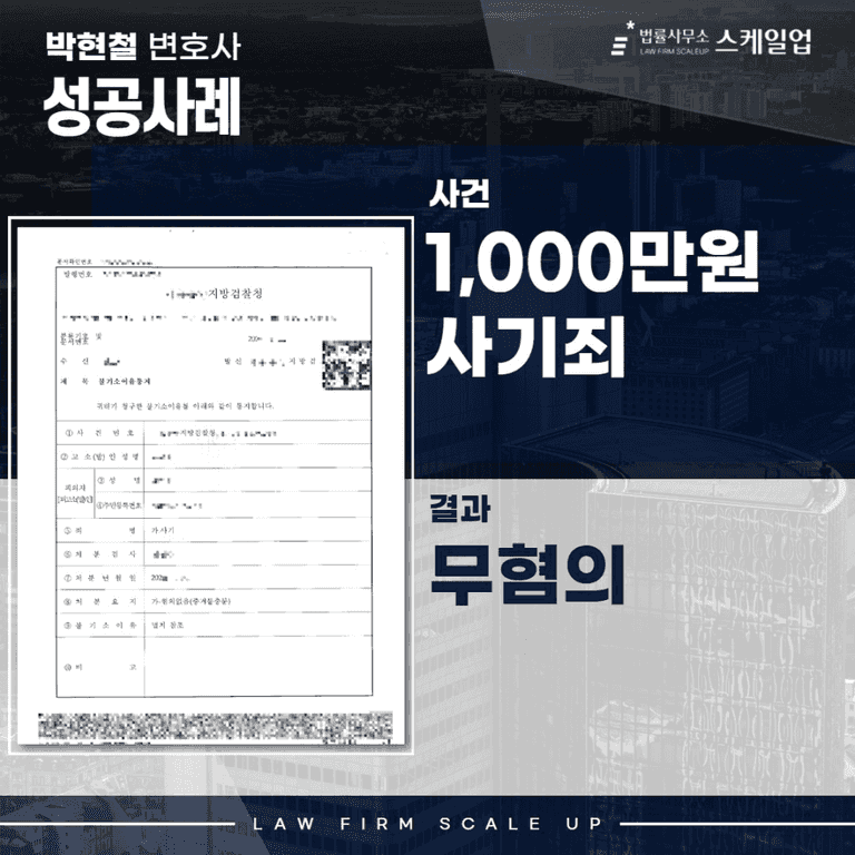 안녕하세요. 법률사무소 스케일업, “사기 전문 박현철 변호사”입니다.