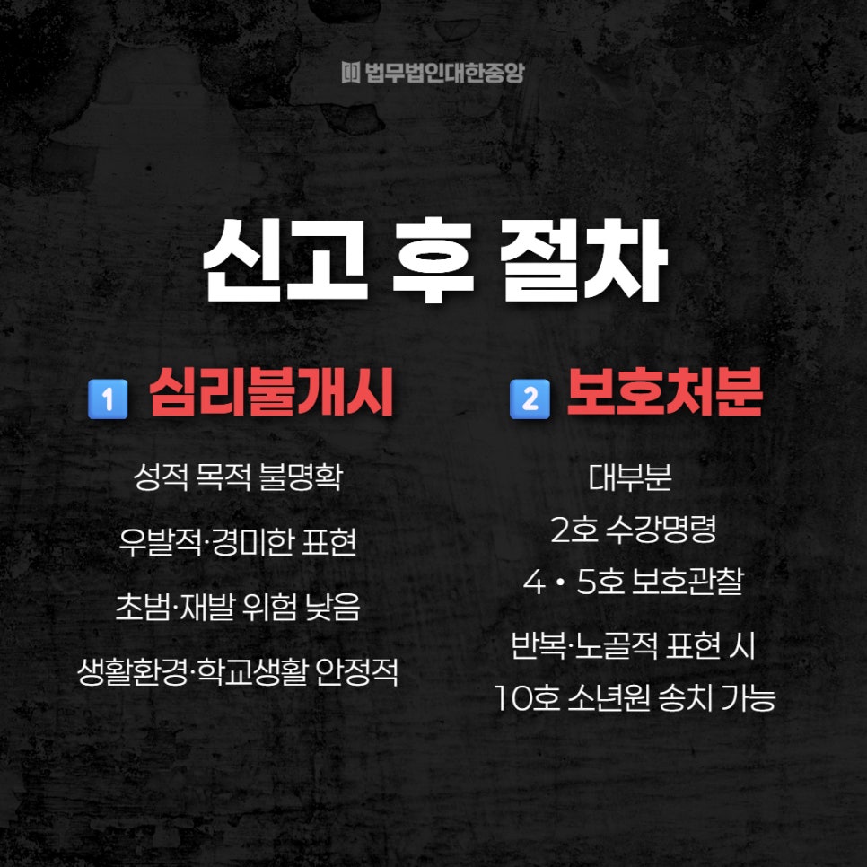 4. 신고 후 절차 : (1) 심리불개시 (2) 보호처분
