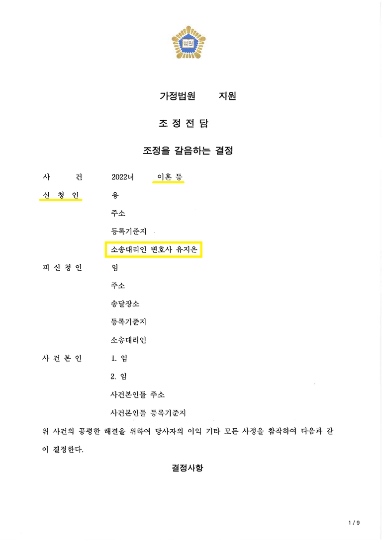 다행히 저희가 청구한 대로 선박의 소유권을 돌려받고, 각자 재산 각자 보유하는 것으로 강제조정결정이 나와 재산분할을 100% 방어하며 성공적으로 마무리한 사안입니다.
