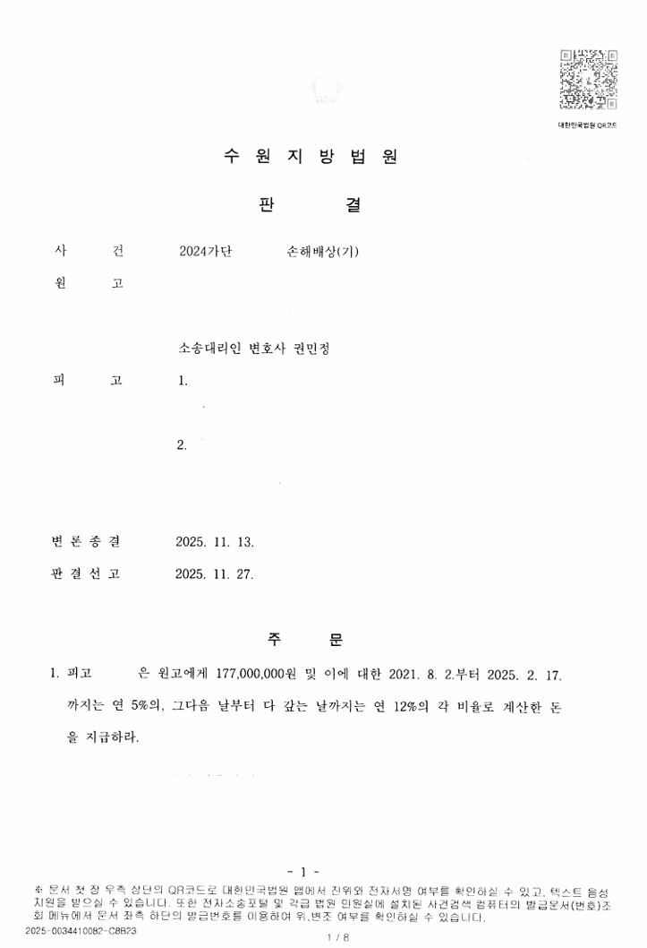그 결과 재판부는 금원을 빌려간 피고의 불법행위를 전부 인정하고 원고 청구 1억 7천여만원을 전부 인용하였습니다.