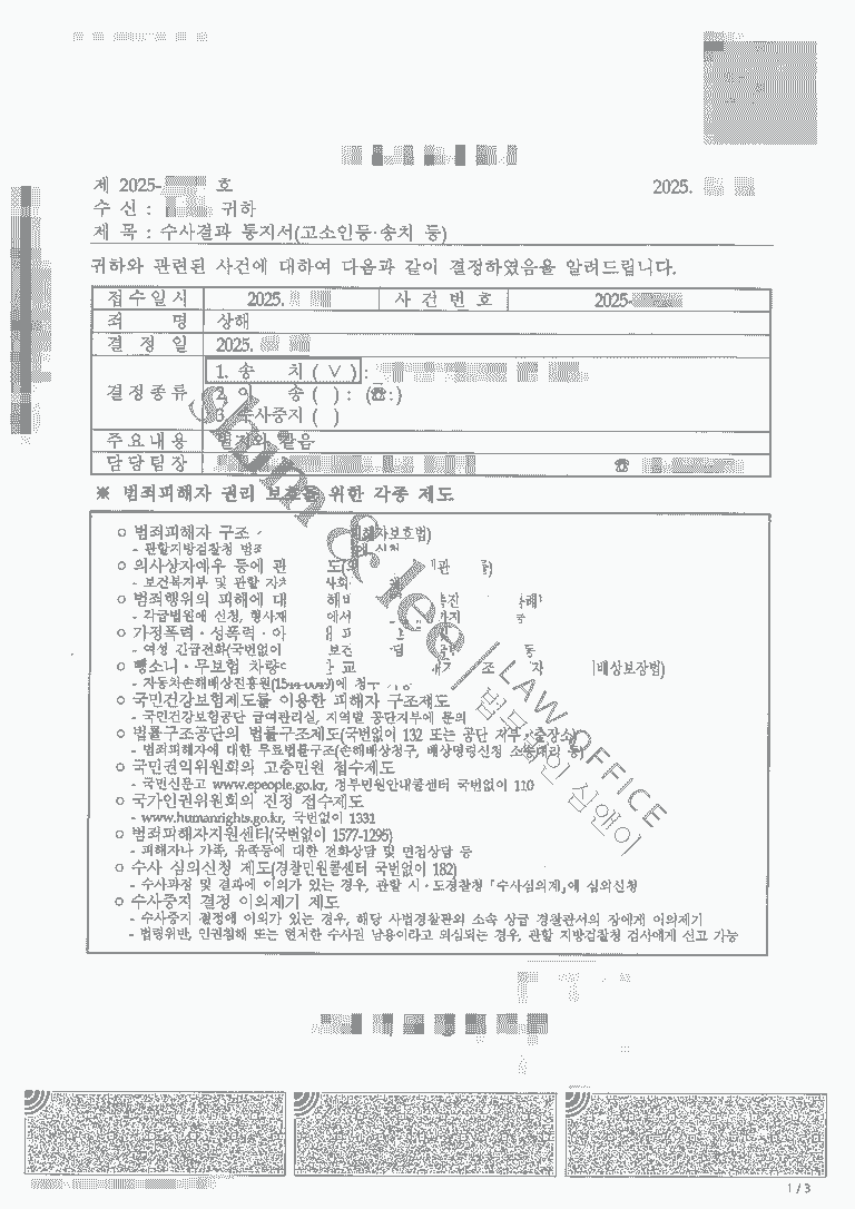 - 성병 상해 사건은 초기 대응이 무엇보다 중요한 분야이므로, 비슷한 피해를 겪으신 분들은 심앤이의 체계적이고 전문적인 조력을 받아보시기를 권합니다.