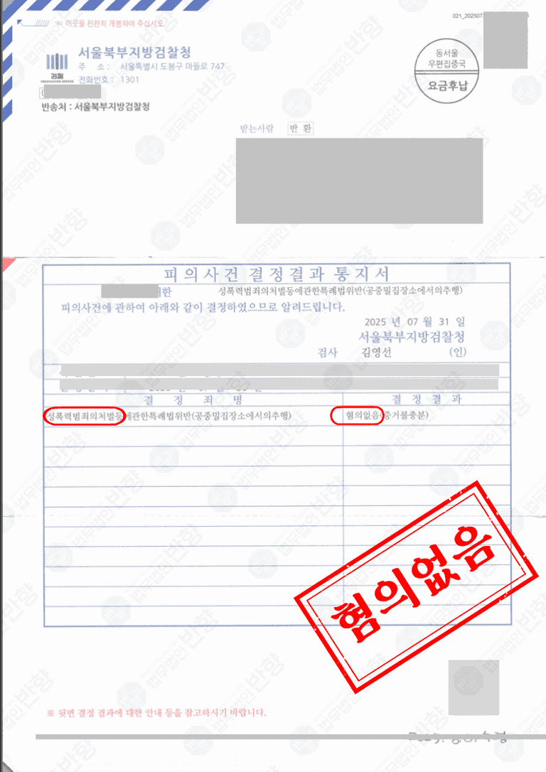 수사기관은 제출된 객관 자료와 정황을 종합적으로 판단한 결과 의뢰인의 행동이 고의적 추행으로 보기 어렵다고 결론 내리고 강제추행 혐의 무혐의(불기소) 처분을 내렸습니다
