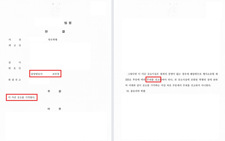 처분/결과 - [특수폭행 무죄, 폭행 공소기각]