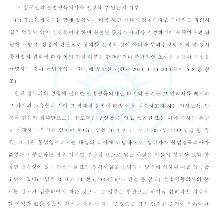 처음부터 이 사건의 수사 과정에는 큰 문제가 있었습니다. 절도죄든 점유이탈물횡령죄이든, 핵심은 “가져가서 자기 것으로 삼으려는 의사”, 즉 불법영득의사입니다. 이는 사람의 주관적인 내심의 의사이므로 각종 정황을 종합해서 ‘객관적이고 세심하게’ 판단해야 합니다.