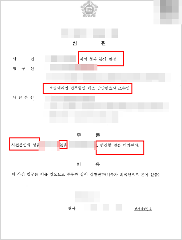 2. 의뢰인은 전 남편을 상대로 성본변경심판청구를 제기 함