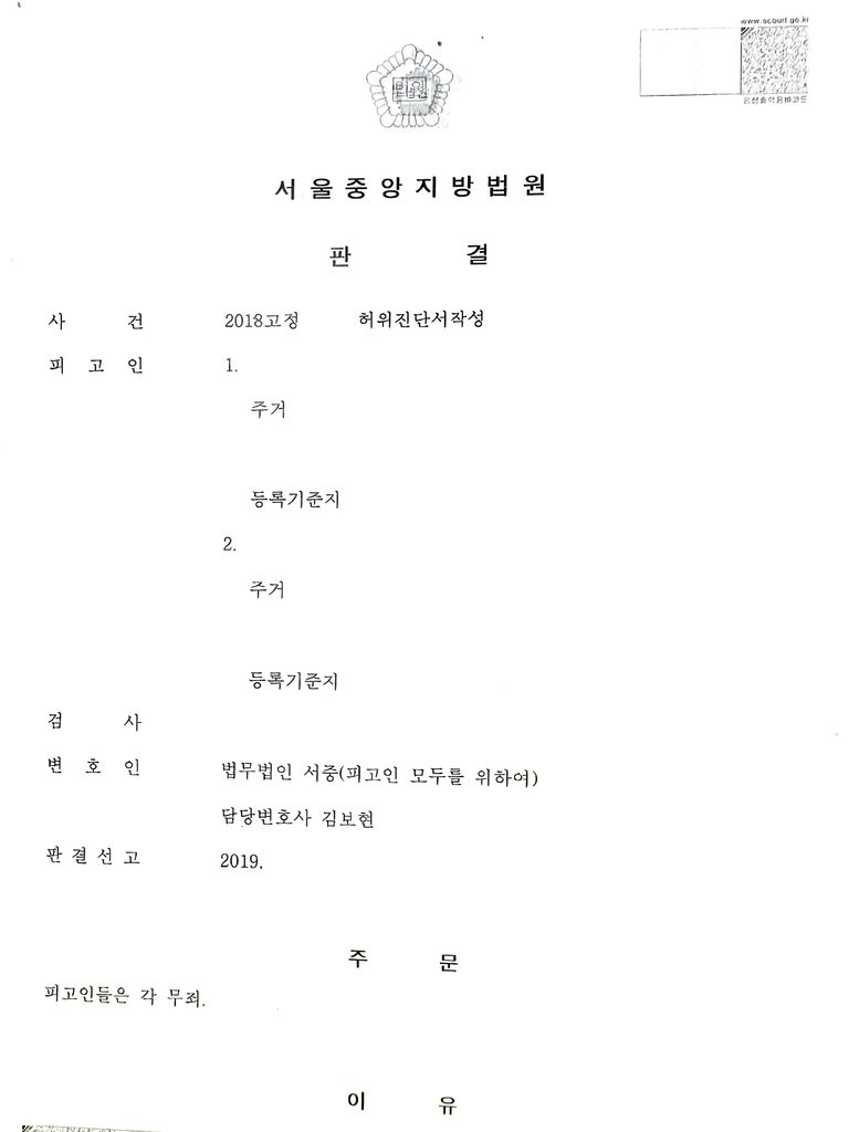 <병원을 운영하는 원장이 허위로 진단서를 작성하였다고 기소된 사건에서 무죄 선고된 사례>