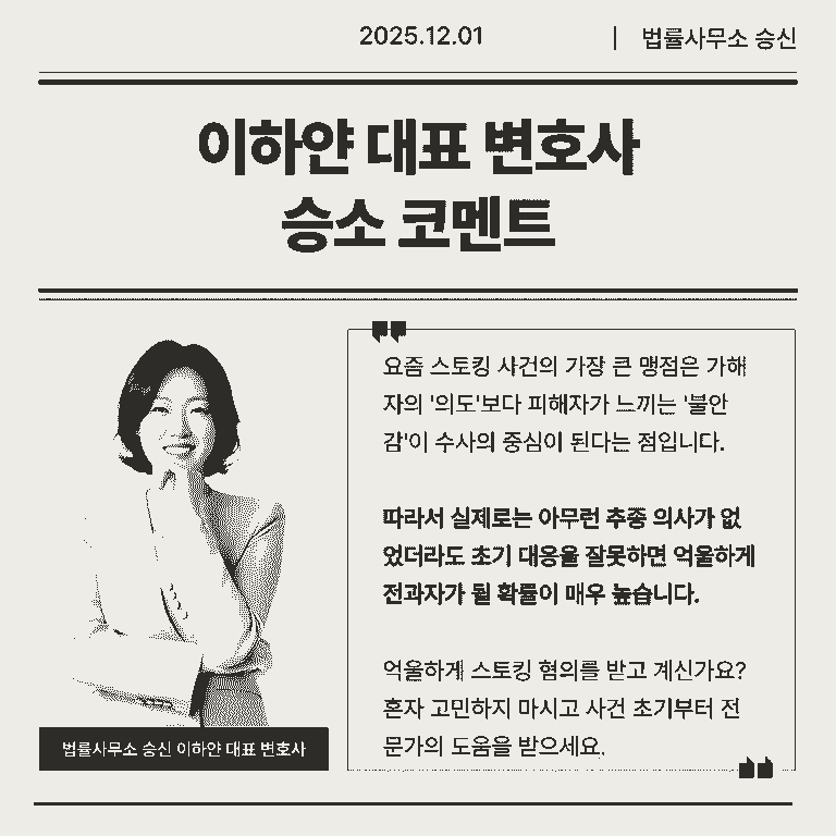 단발성의 우연한 사건을 두고 법적으로 처벌 가능한 '스토킹 행위'라 규정할 수 없음을 강력히 주장했습니다.