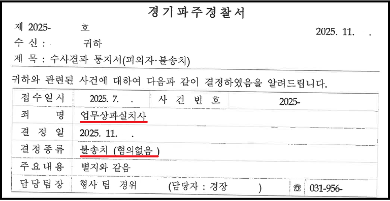 수사기관은 수개월에 걸친 수사 끝에, 의뢰인분들이 이 사건 당시 정확한 의학적 판단에 따라 의료행위를 진행하였고, 의뢰인분들의 행위에 업무상 과실이 존재하지 않는다는 변호인의 주장을 모두 받아들여 주셨습니다.