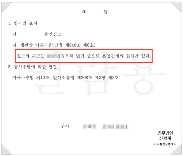 (2) 27년의 혼인 기간 중 10년간 별거 한 사실, 그 간 연락조차 닿지 않으며 부부로서의 실체가 완전히 소멸한 점 등을 체계적으로 정리하여 제출했습니다.