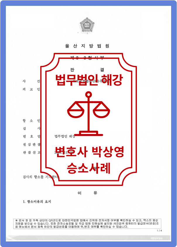 저희 법무법인 해강은 법리적인 검토를 통하여 의뢰인 상황에 맞춘 변호인 의견서 등 작성을 통하여 의뢰인을 위해 최선을 다하였고 이에 [검사 항소기각]을 이끌어냈습니다.