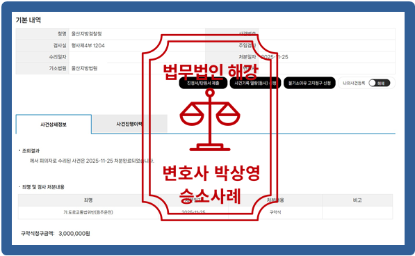 저희 법무법인 해강은 법리적인 검토를 통하여 의뢰인 상황에 맞춘 변호인 의견서 등 작성을 통하여 의뢰인을 위해 최선을 다하였고 이에 [약식기소]를 이끌어냈습니다.