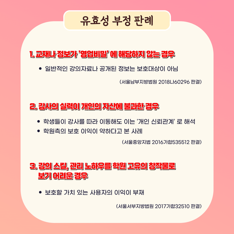 | 교재나 강의정보가 영업비밀에 해당하지 않는 경우