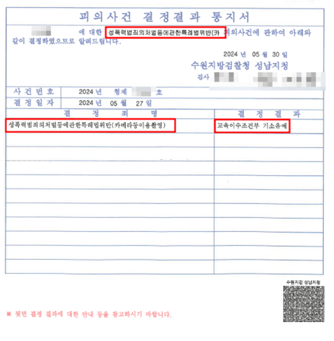 결국 기소유예 처분으로 마무리되었습니다.