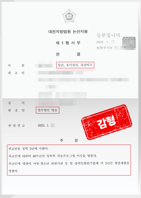 얼마 전 [법무법인 법승]에서 다루었던 사례도 마찬가지였는데요. 검사가 무려 징역 10년을 구형했음에도 불구하고 법정형 최하한인 3년을 받아 냈습니다. 이는 단순한 형량의 감경을 넘어서 실형의 무게를 절반 이상으로 줄인 전략적 성과였다고 설명드릴 수 있겠습니다.