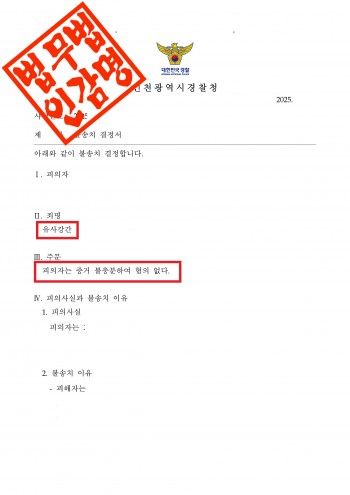 인천광역시경찰청은 이 사건에 대해 다음과 같은 사유로 불송치 결정을 하였습니다.